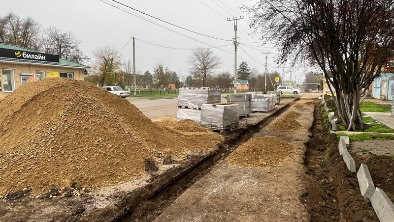 На объекте будут проводиться работы по укладке брусчатого покрытия и монтажу бордюров. Общая протяжённость тротуара составит 74 метра.