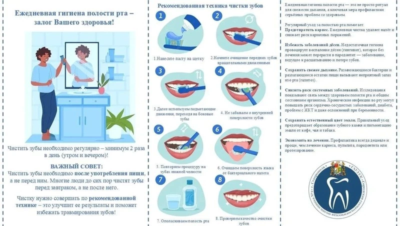Регулярный уход за полостью рта помогает предотвратить кариес, избежать заболеваний дёсен, сохранить свежее дыхание и снизить риск системных заболеваний.