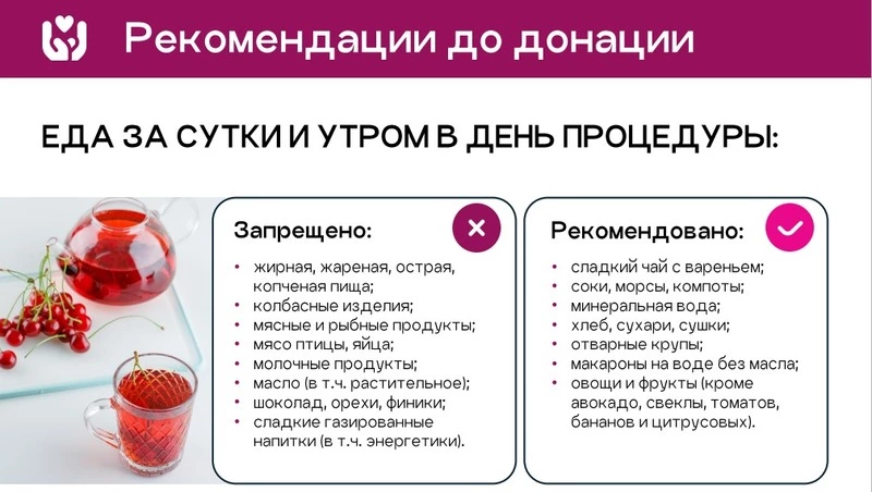 Медики напоминают, что стать донором может любой здоровый человек старше 18 лет и весом не менее 50 кг. За сутки перед донацией рекомендуют придерживаться специальной диеты, а после процедуры уделить внимание восстановлению организма.